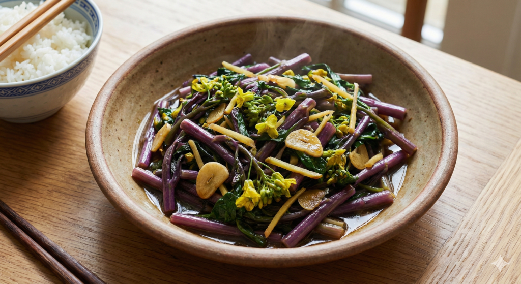 De naam ‘Hon Tsai Tai’ is de Kantonese benaming en betekent vrij vertaald ‘rood-paarse groente’. Soms kom je hem in zadencatalogi ook tegen onder de naam ‘Purple Flowering Choy Sum’. Het is een eenjarig gewas dat vooral gewaardeerd wordt om zijn zachte, zoete smaak en de knapperige textuur. In de keuken is het een echte alleskunner; je gebruikt de stelen, het blad én de bloemknoppen in roerbakgerechten, salades of even kort gestoomd.