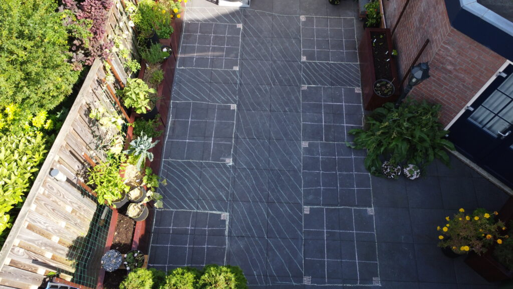In mijn bakken bestaan die paadjes niet. Ik heb een raster van vakken (30×30 of 40×40 cm). Omdat ik om de bak heen loop en er nooit in sta, kan ik elke centimeter gebruiken voor planten. Ik oogst dus van 100% van het oppervlak.